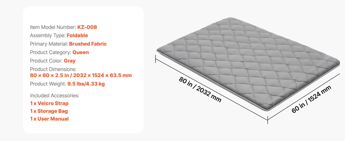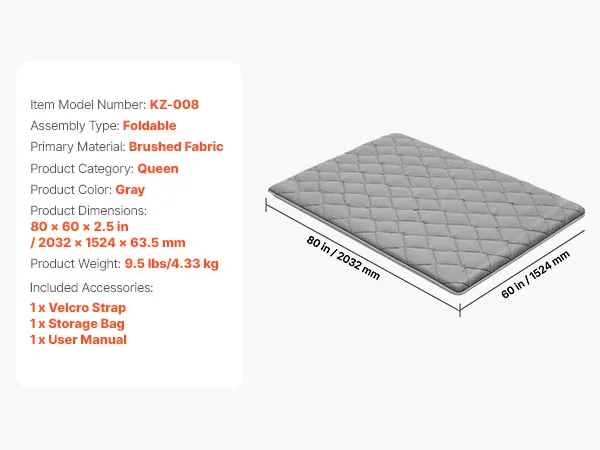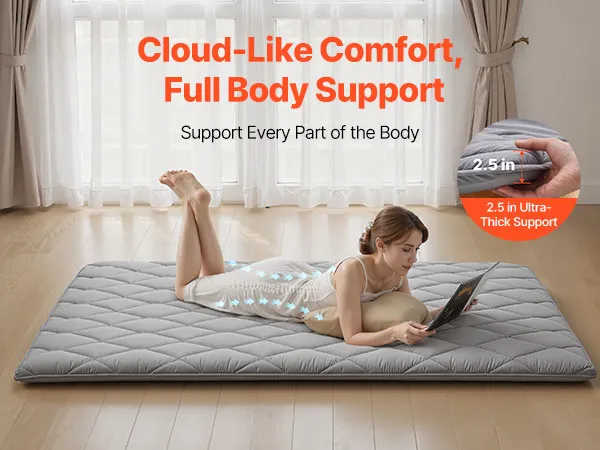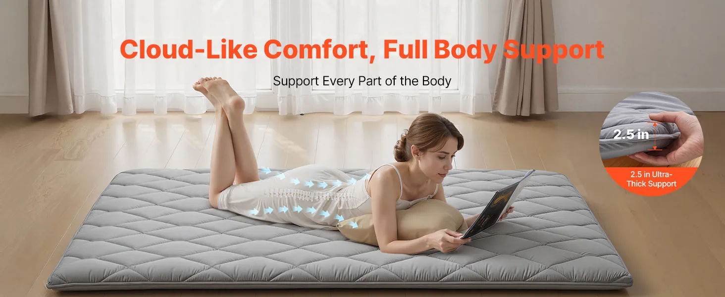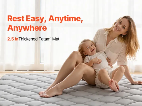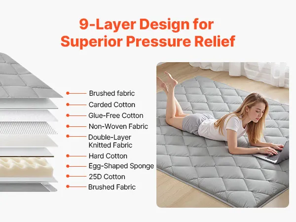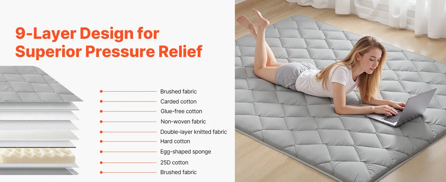 Thickened 9-Layer Support: This 2.5 in tatami mat features a 9-layer structure with egg-crate foam and 25D memory foam for balanced support and comfort. Its ergonomic design contours to your body and helps protect your spine for a better night’s sleep