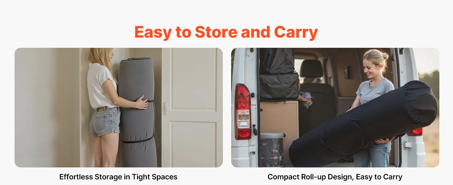 Easy to Store and Carry: The Japanese tatami mat can be rolled up and tied with straps to save closet space, ideal for small homes. It includes a storage bag for easy transport, letting you rest comfortably in tents, RVs, or your car trunk