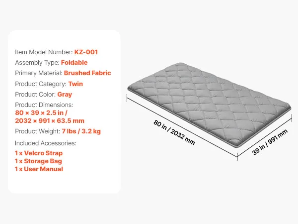 VEVOR Japanese Tatami Mat, Twin Size Foldable Japanese Tatami Mattress, Futon Mattress with Storage Bag & Fastener, 9-Layer Floor Mat for Sleeping, Dorm, Meditation, Yoga, 2032 x 991 x 63.5 mm, Gray