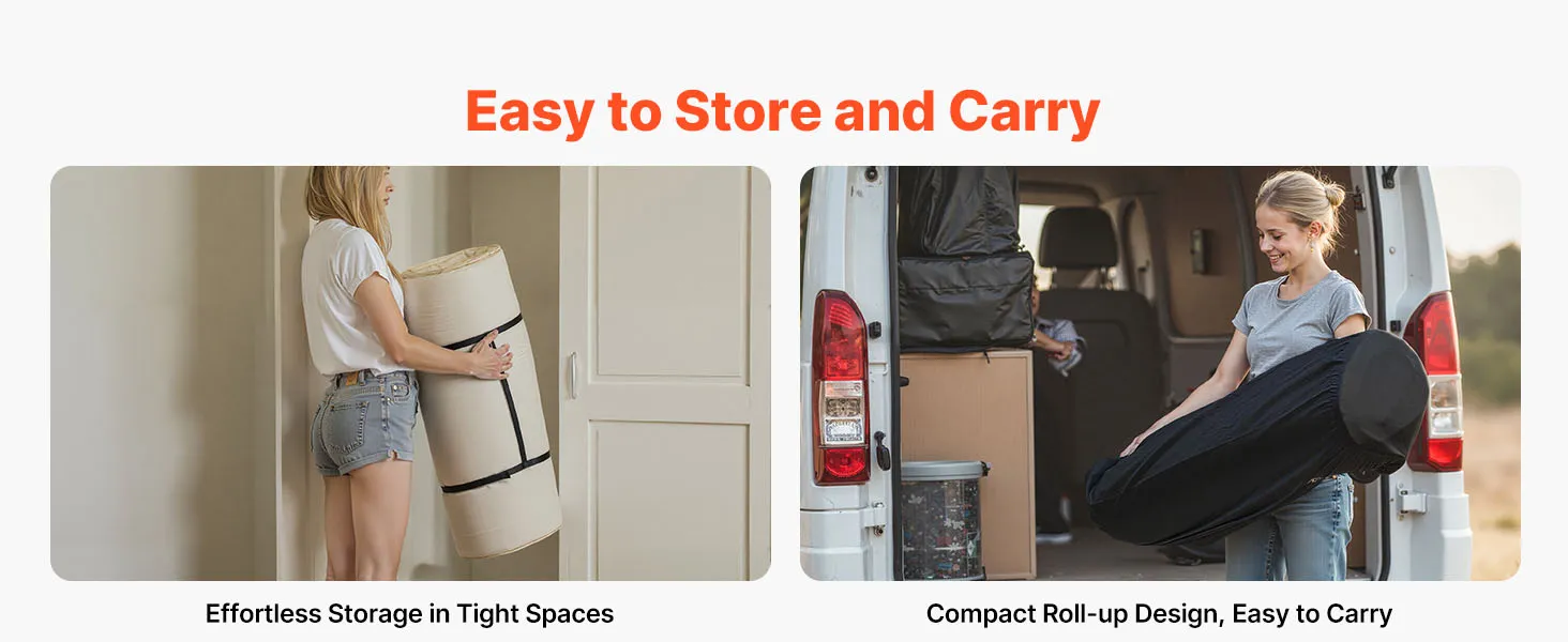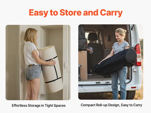 Easy to Store and Carry: The Japanese tatami mat can be rolled up and tied with straps to save closet space, ideal for small homes. It includes a storage bag for easy transport, letting you rest comfortably in tents, RVs, or your car trunk