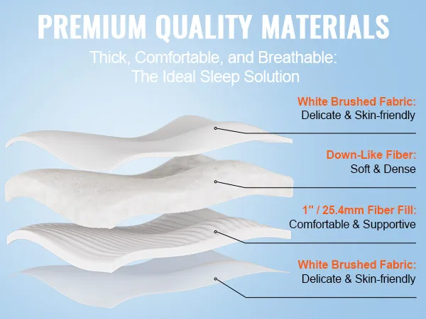 Our mattress bed topper is made of premium fiber filling and polyester fiber fabric, providing support for the body, helping to capture and dissipate heat, effectively reducing pressure on various parts of the body. The detachable cloth casing design and bedside pocket design makes cleaning easier.