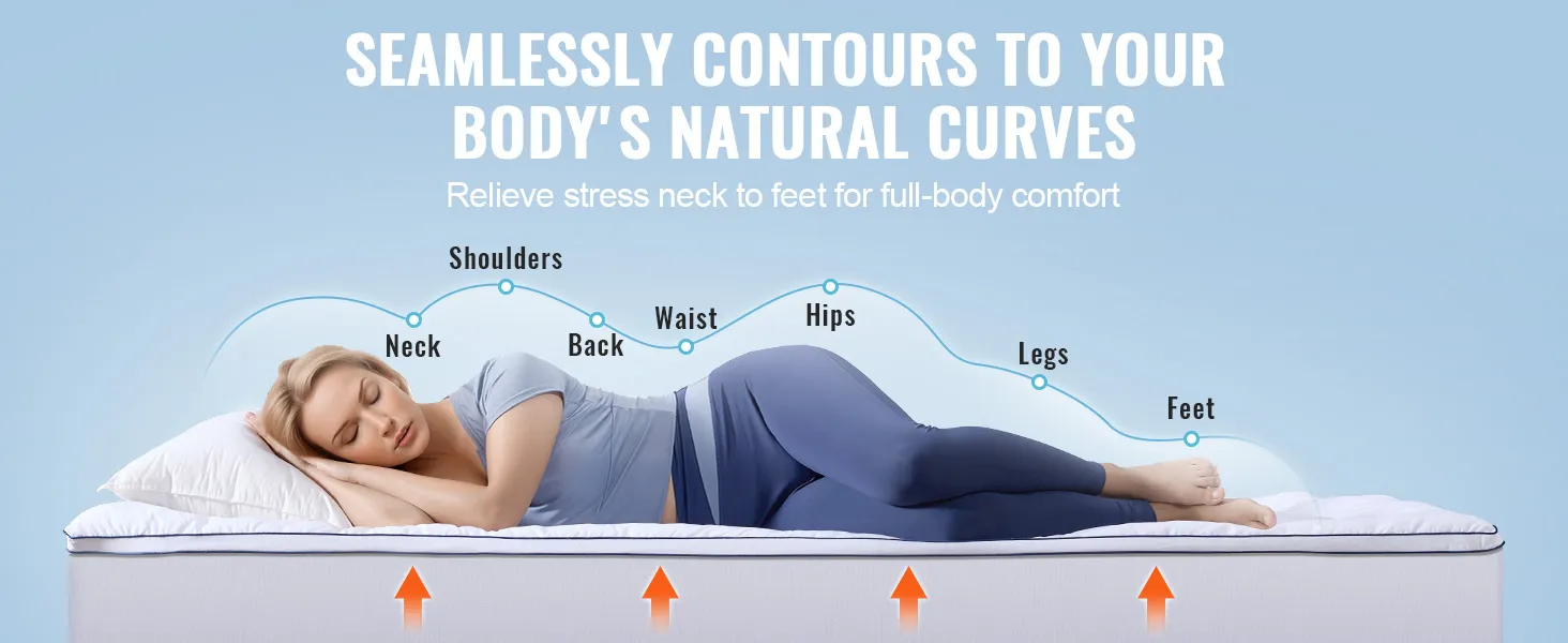 Ergonomically designed to contour your body, our mattress bed topper provides support where you need it most, evenly distributing pressure to relieve fatigue and safeguard your spine. Enjoy a restful night’s sleep every time.