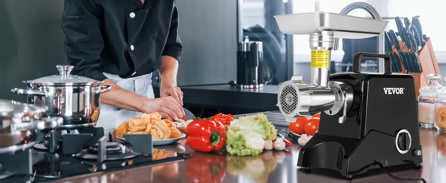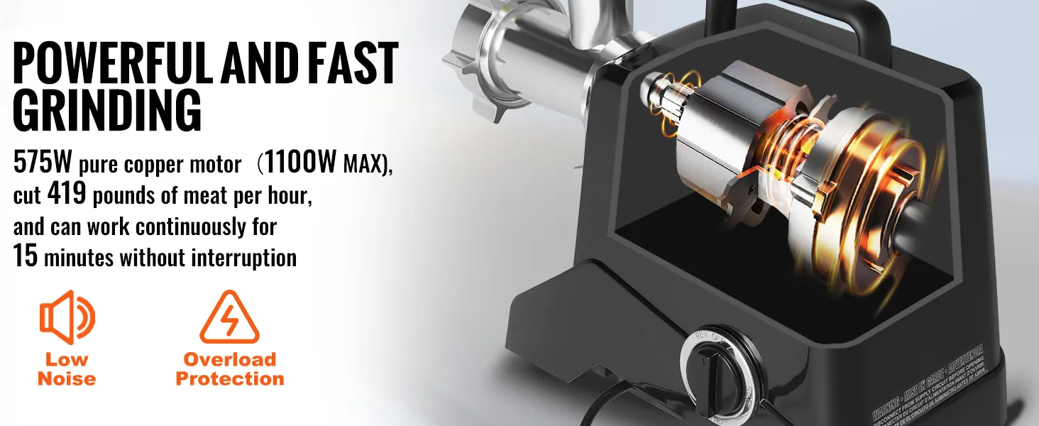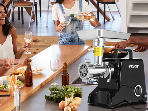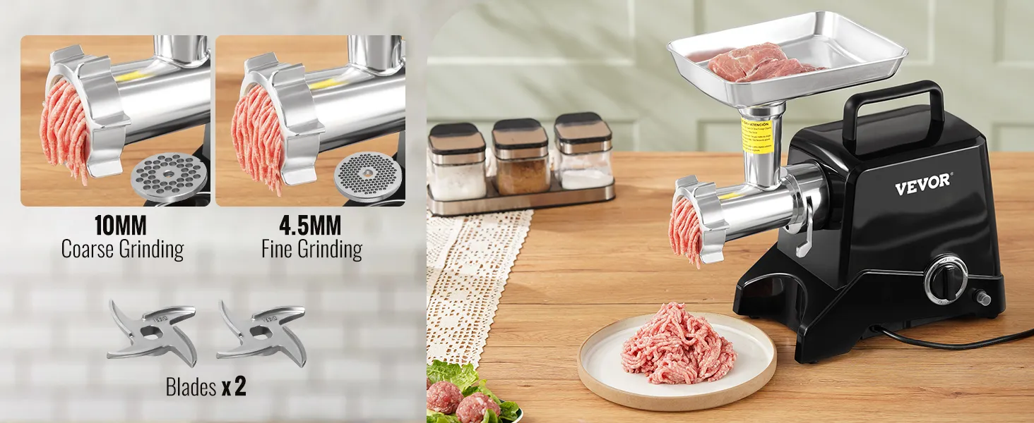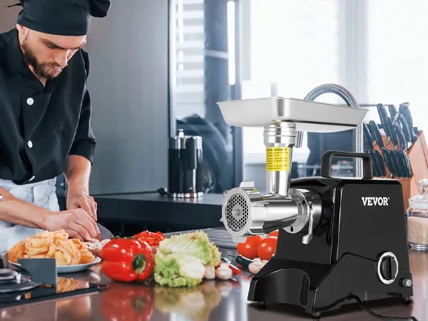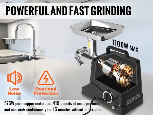Electric Meat Grinder: The meat grinder features a powerful motor and an oversized meat hopper. This grinder can grind up to 2.27 kg of meat per minute and operate continuously for more than 30 minutes.