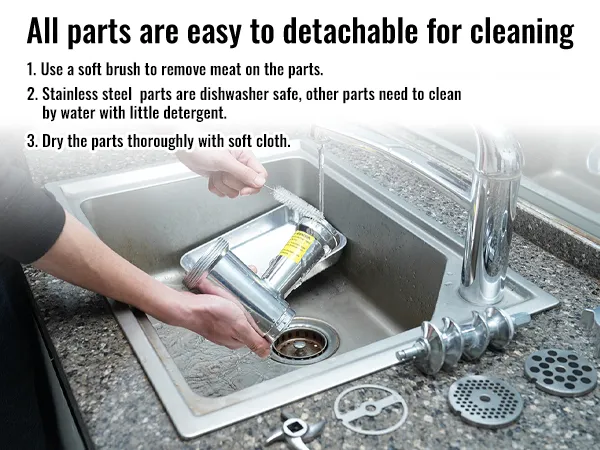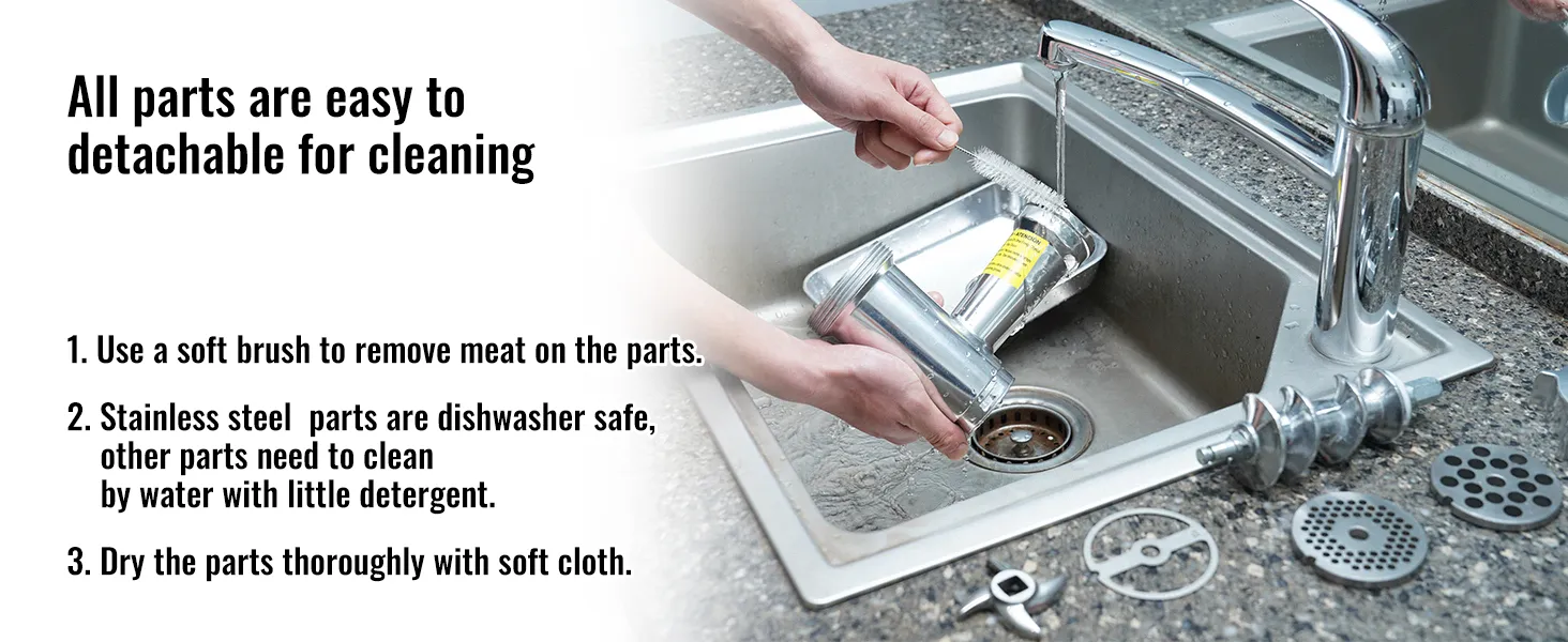 Cleaning is A Breeze: All parts are detachable for cleaning, stainless steel accessories can be directly thrown into the dishwasher machine, and the rest of the accessories can be cleaned with a complimentary cleaning brush or wet towel with water and a small amount of detergent.