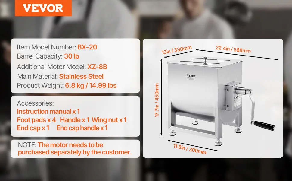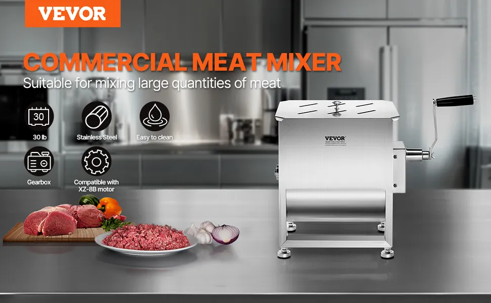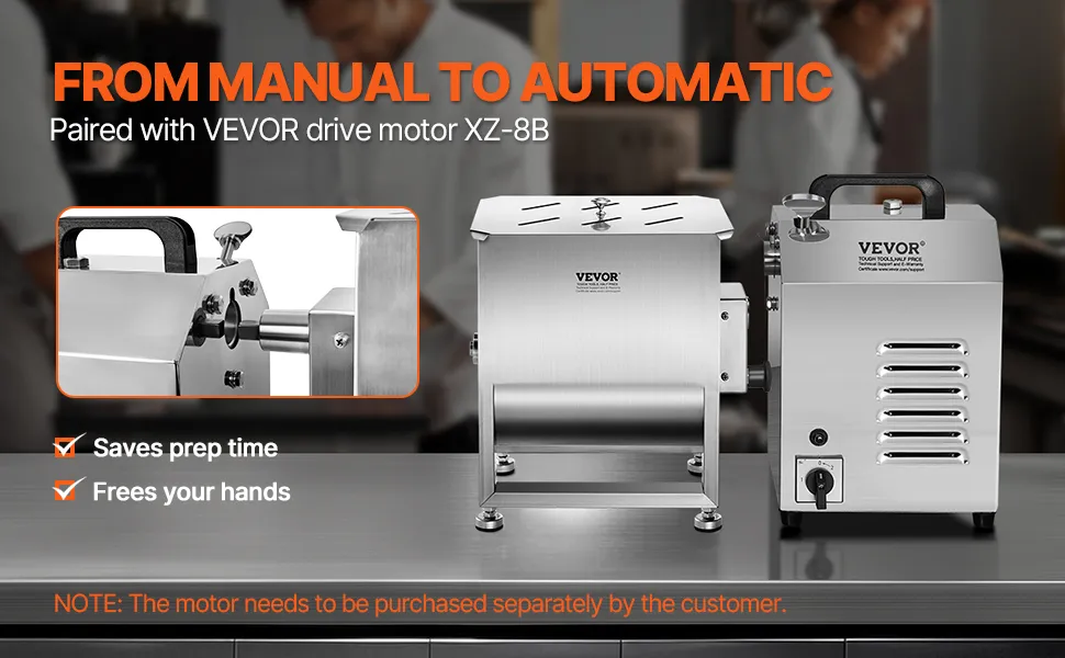 Gearbox Structure: This meat mixer features a gearbox design, making operation more effortless. It is compatible with the VEVOR drive motors XZ-8B, allowing for hands-free operation, so one person can easily handle the task.