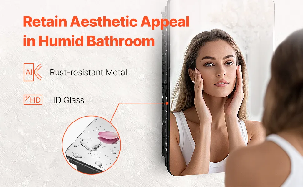 Crafted from corrosion-resistant aluminum, this bathroom mirror medicine cabinet stands up to humidity, chemicals, and everyday wear and tear, ensuring long-lasting durability and protection.