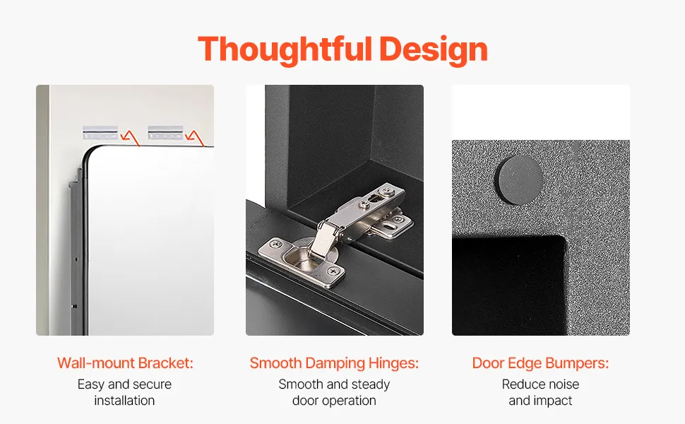 Additional Premium Features: Equipped with high-quality, low-noise damping hinges, this medicine cabinet with mirror is designed for smooth and quiet opening and closing. The surface is scratch-resistant and rust-proof, while the included cushioning pads further reduce noise, enhancing your overall user experience.