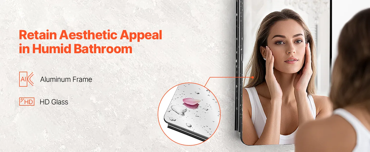 Crafted from corrosion-resistant aluminum, this bathroom mirror medicine cabinet stands up to humidity, chemicals, and everyday wear and tear, ensuring long-lasting durability and protection.