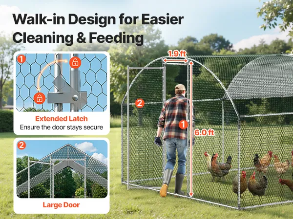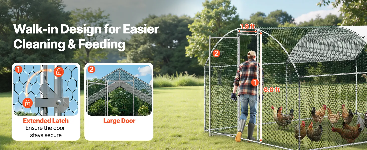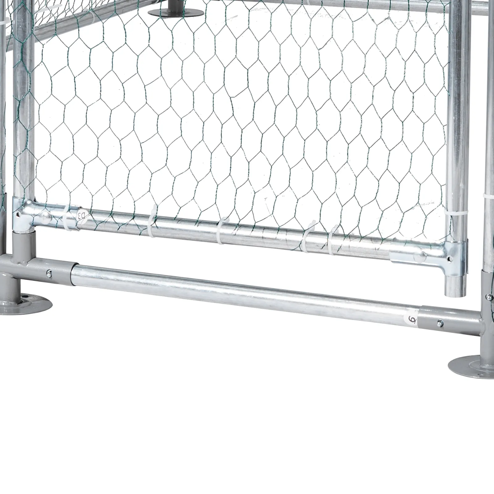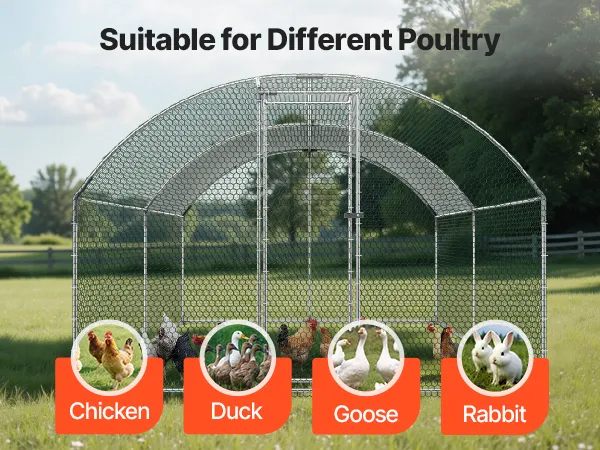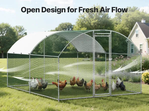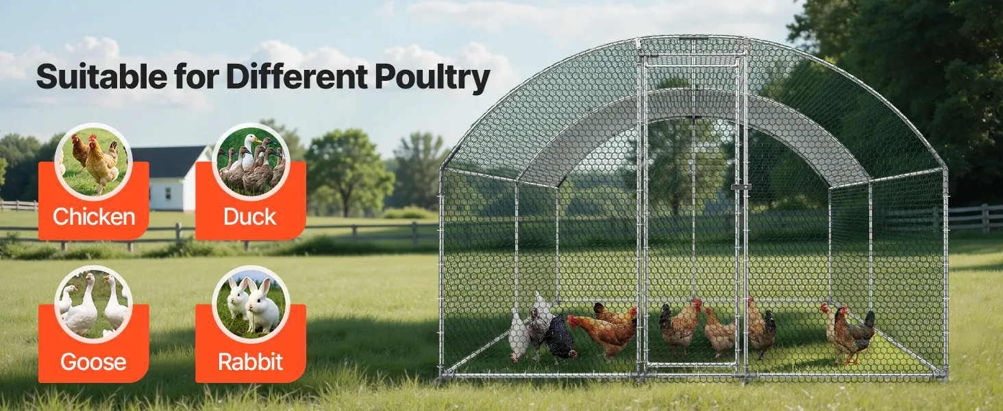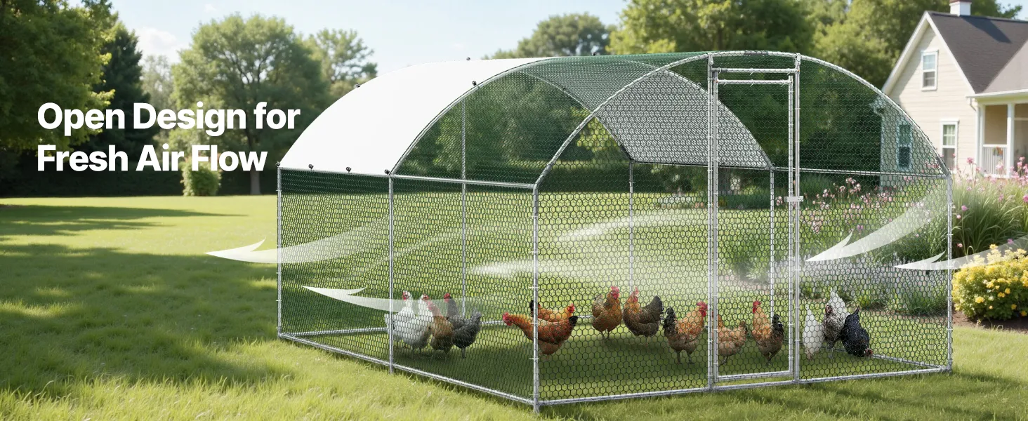 Sturdy Structure: With 1" thick galvanized steel pipes and precise welding, this metal chicken coop boasts stability and wind resistance. The top cover facilitates effective drainage, preventing water accumulation. Reinforced with hexagonal protective mesh, it provides a securer space for the poultry.
