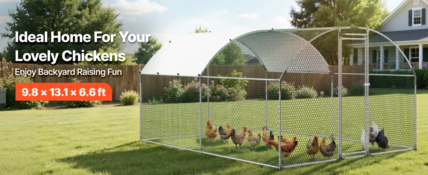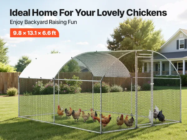 VEVOR Metal Chicken Coop, 9.8x13.1x6.5 ft Large Walk-in Chicken Runs with Cover, Doom Roof Hen House Enclosure with Security Lock, Outdoor Duck Rabbit Cage Poultry Pen for Backyard, Farm, Yard