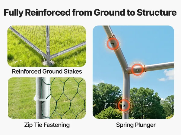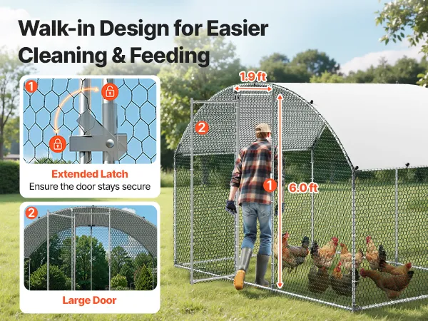 Weatherproof & Corrosion-proof: Crafted from galvanized steel pipes, and rigorously tested against salt spray, this large chicken coop withstands harsh weather conditions like rain, wind, and sun exposure, ensuring long-term stability and securety.