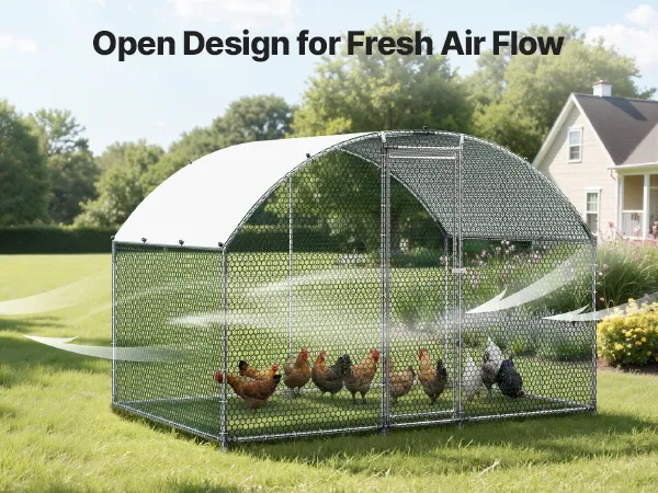 Sturdy Structure: With 1" thick galvanized steel pipes and precise welding, this chicken coops for 6 chickens boasts stability and wind resistance. The top cover facilitates effective drainage, preventing water accumulation. Reinforced with hexagonal protective mesh, it provides a securer space for the poultry.