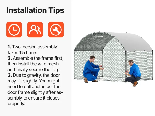 Easy Installation: With easy-to-use accessories, installation is a breeze. You can reinforce the walk in chicken coop by adding wood or stones to the bottom. For added protection against wildlife like raccoons, we recommend adding a galvanized wire fence.