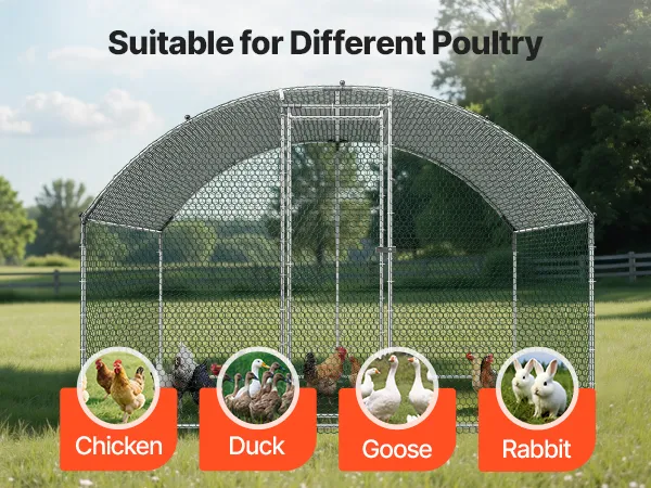 Versatile Application: The metal chicken run is not only suitable for chickens but also for ducks, quails, rabbits, and other poultry. It meets your needs, providing a secure and comfortable living space for the poultry.