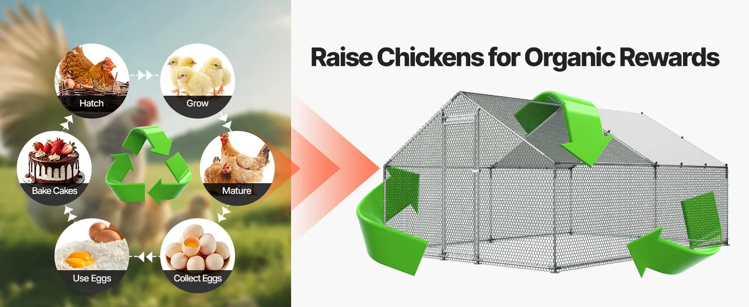 Weatherproof & Corrosion-proof: Crafted from galvanized steel pipes and rigorously tested against salt spray, this large metal chicken coop withstands harsh weather conditions like rain, wind, and sun exposure, ensuring long-term stability and security