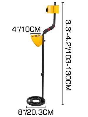 This metal detector has an armrest design, comfortable grip. Adjustable stem: 102-130cm/3.3-4.2ft. For people of different height.