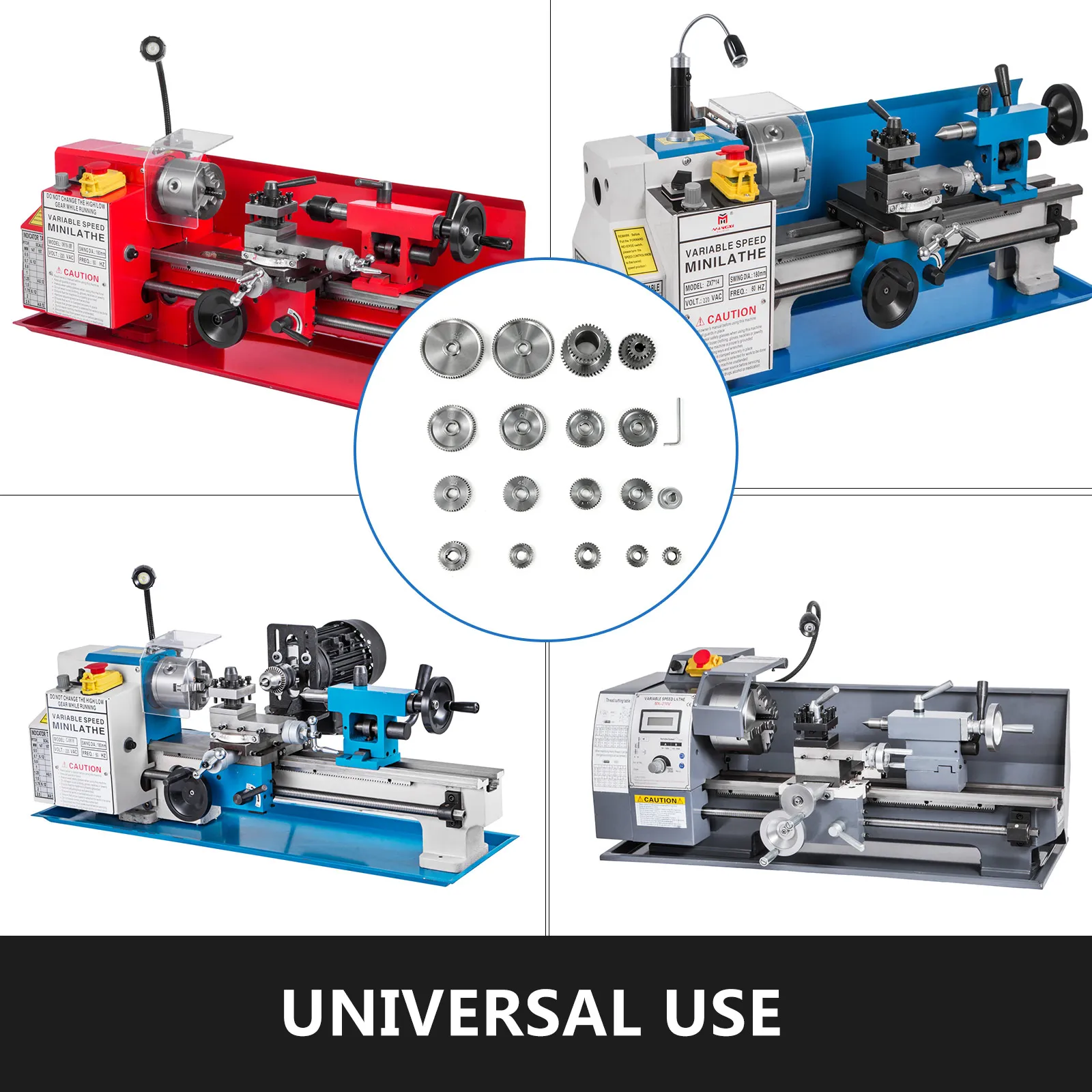 This set is perfect for both hobbyists and professionals. It turns your mini lathe into a more reliable and powerful tool. Enjoy the benefits of a smoother, quieter, and more efficient lathe operation! Gears VEVOR's gear set includes high-quality steel that ensures durability and strength. They fit perfectly while running smoothly, reducing noise and vibration. Grease also coats the gears to reduce heat or friction. This extends their lifespan and maintains performance. The set comprises 18 gears, offering versatility for a variety of tasks. These gear sets include 18 pieces of equipment, providing flexibility during installation and swapping. So, you can use it for different tasks without additional maintenance. Installation and switching out are easy. Our gear set is ideal for both hobbyists and professionals. You should consider this set before starting production. Your mini lathe set: installing and changing courses is easy. Today, turn your miniature lathe into an even more dependable and strong tool. Explore the benefits of a smoother, noise-quiet operation.