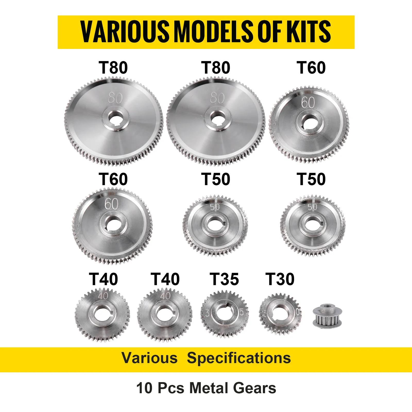 【11 PCS GEAR KITS】 - The mini lathe gear set contains 2 x 80T gears, 2 x 60T gears, 2 x 50T gears, 2 x 40T gears, 1 x 35T gear, 1 x 30T gear, 1 x 17 T gear and 2 extra belts.