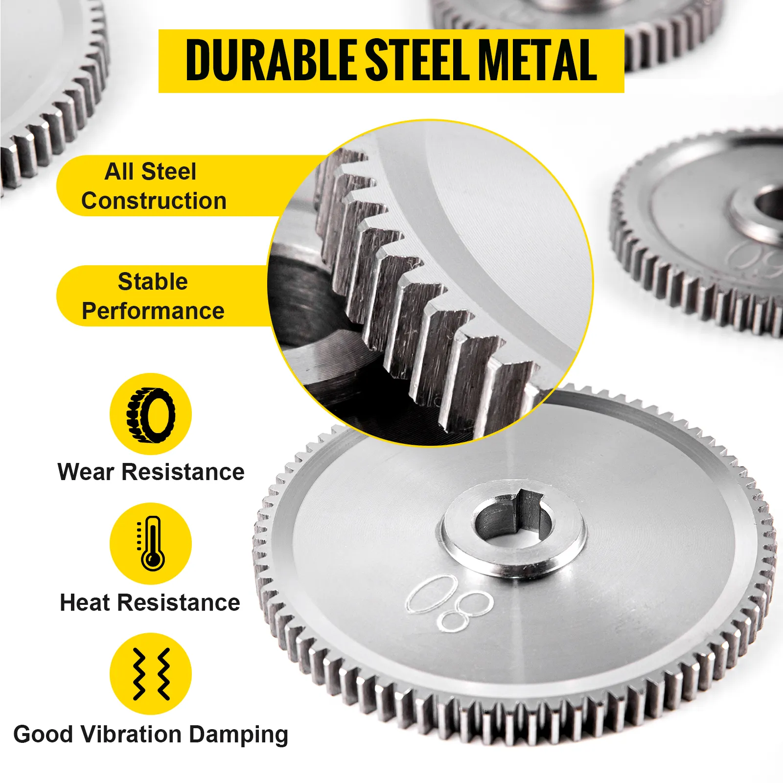 【HIGH-QUALITY MATERIAL】 - The metal lathe gears are made of #45 steel that features impressive plasticity and hardness. They can stand up to wear and corrosion.
