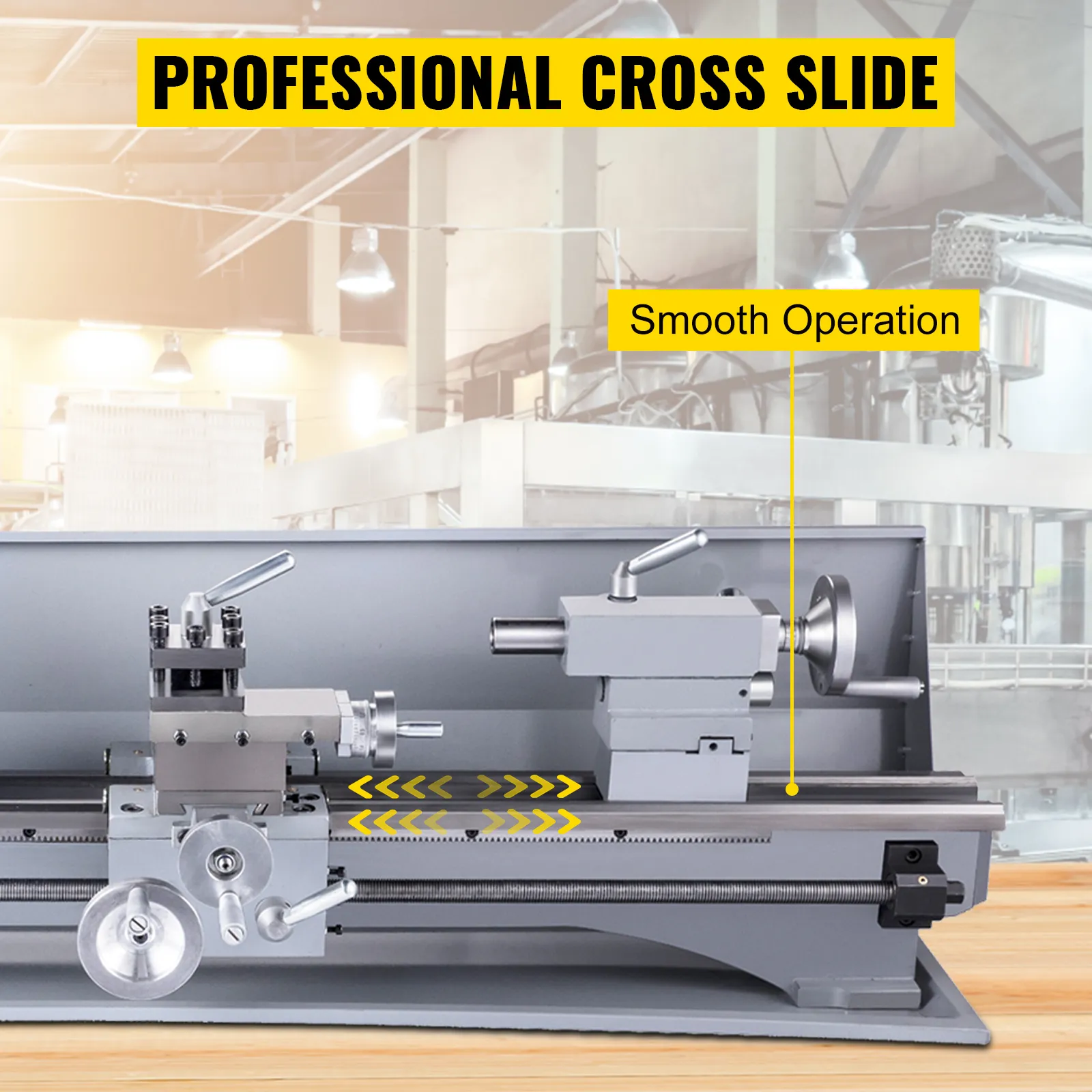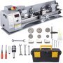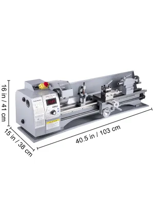 Stable & Reliable Operation: Swing Over Bed: 8"/210 mm; Swing Over Cross Slide: 32"/800 mm. The small metal lathe features a turret post for quick tool change and a center rest for tight pieces holding, making internal cutting, face cutting, and bevel cutting possible.