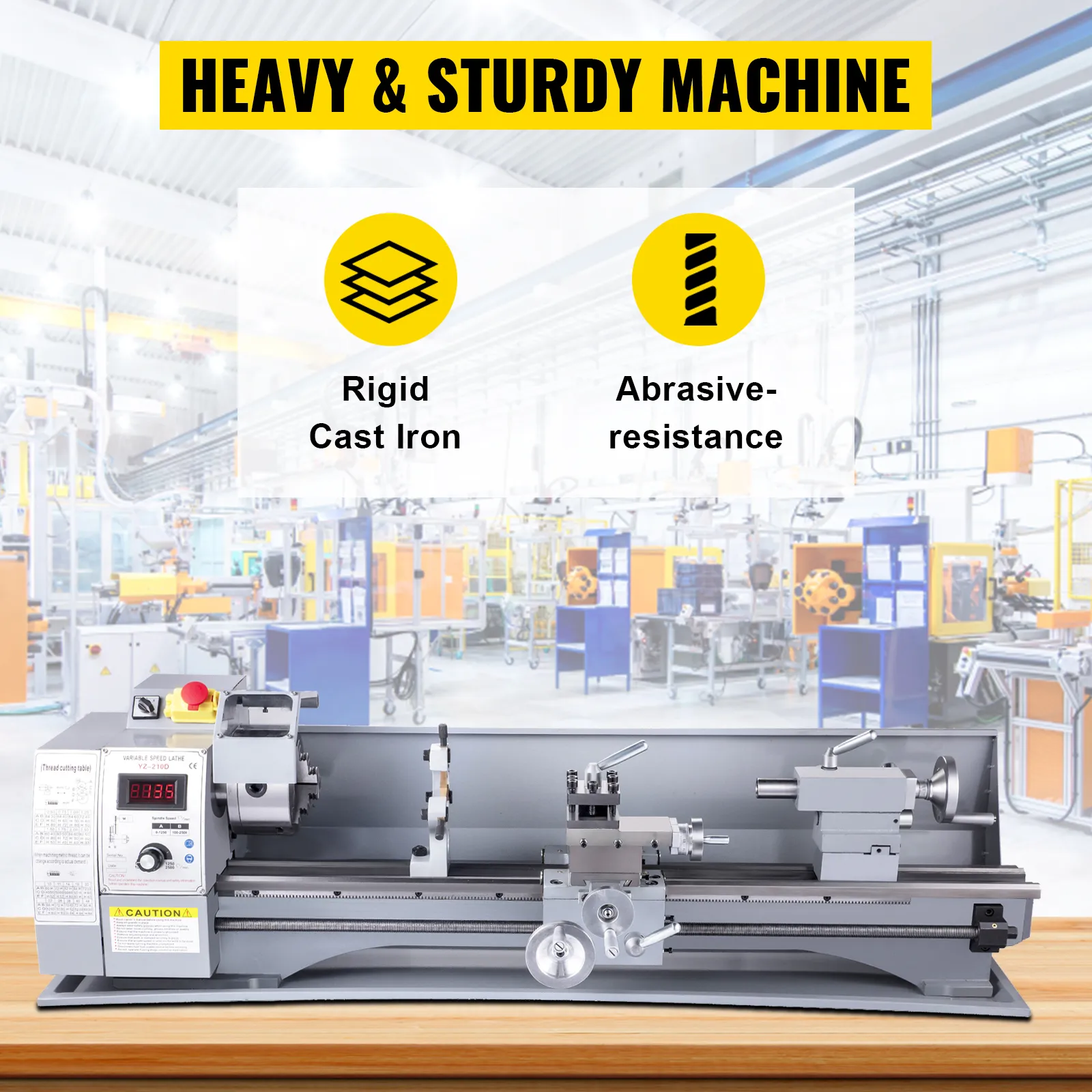 The metal lathe comes with variable speeds of 50-2500 RPM. Easily change the speed by turning the switch. Meanwhile, the indicator beyond notifies you of the ongoing operations.
