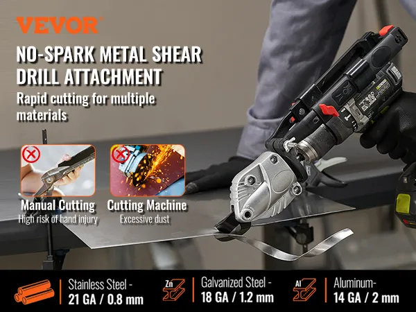 VEVOR Metal Cutter Drill Attachment, Metal Shears Attachment with 360 Degree Pivoting Head, for Cutting Max. 21 GA Stainless Steel, 18 GA Galvanized Steel, and 14 GA Aluminum Metal Sheets