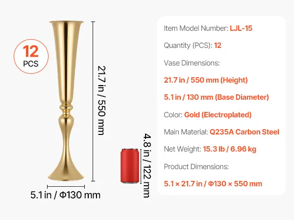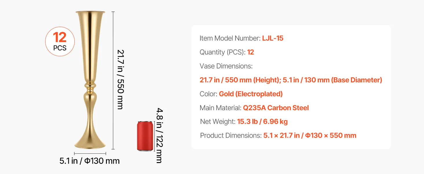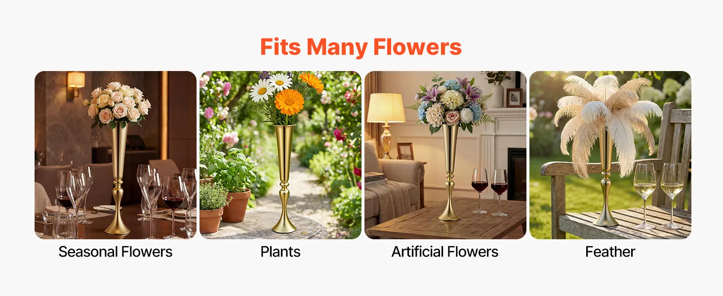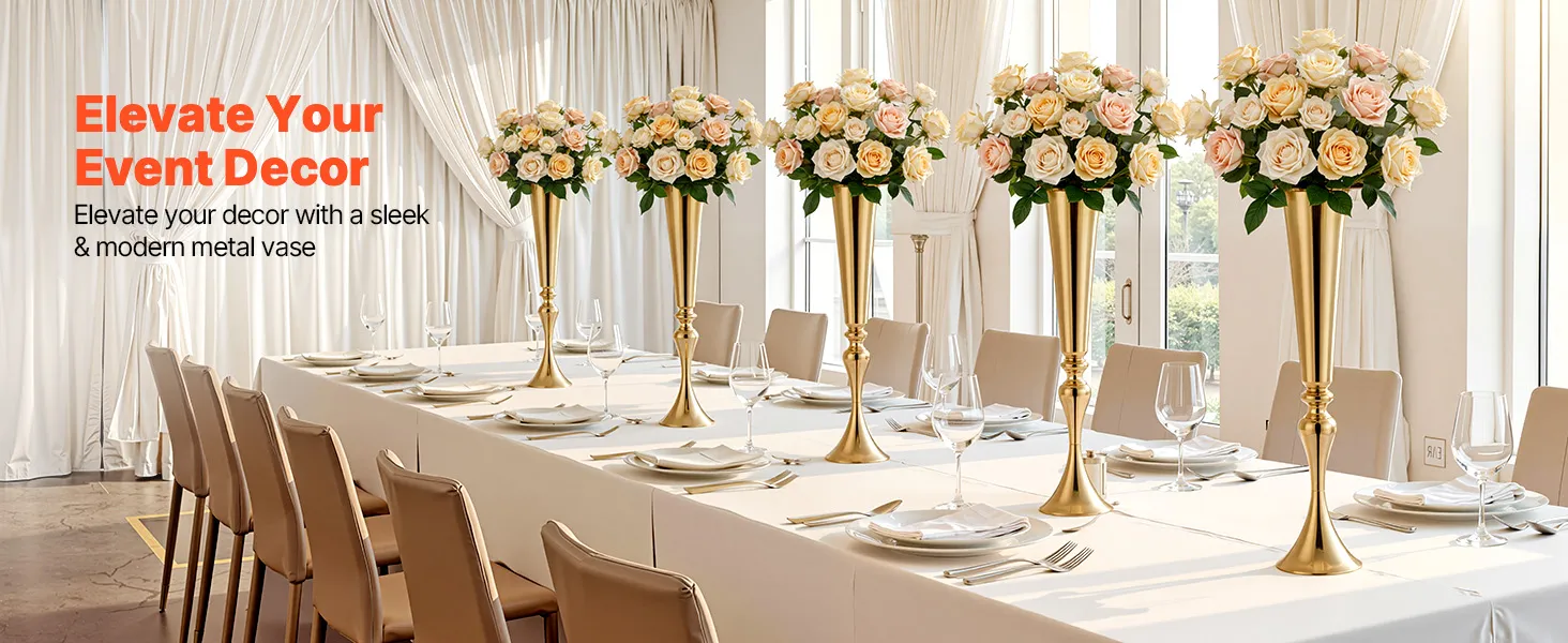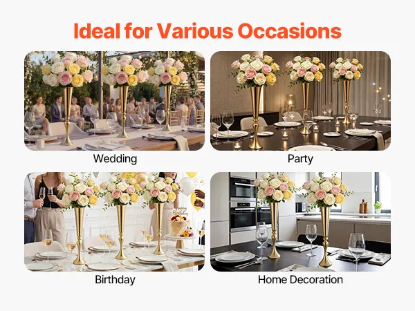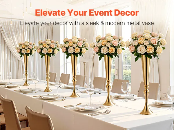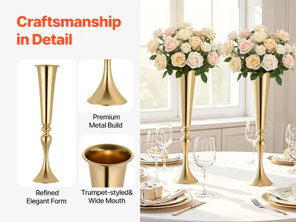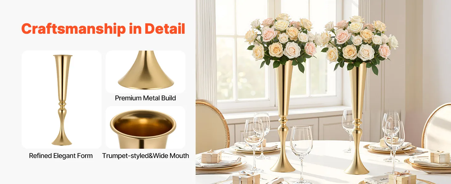 Premium Materials: Made from Q235A steel with a French gold-toned electroplated finish, this wedding centerpiece vase presents a bright, polished appearance with a solid, well-supported structure