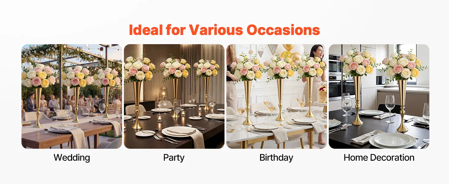 Suitable for weddings, banquets, holidays, and home décor, this wedding decor vase complements a variety of settings with a versatile and coordinated appearance.