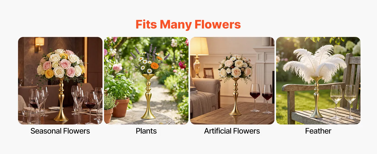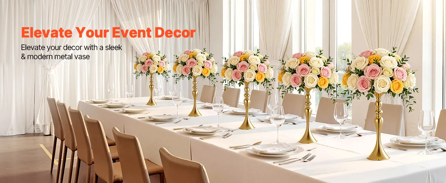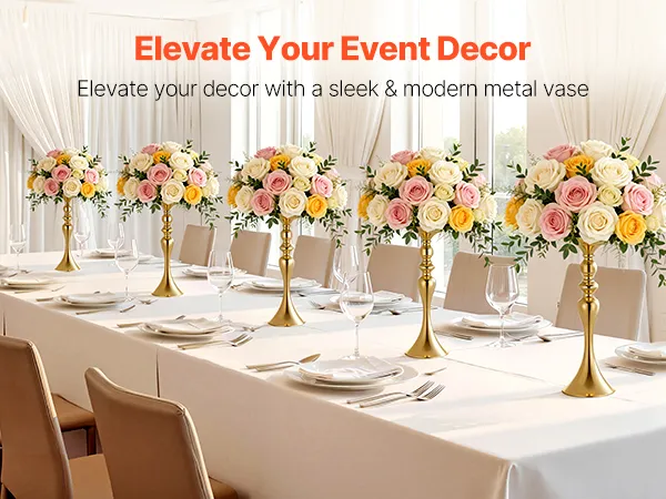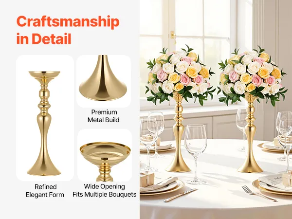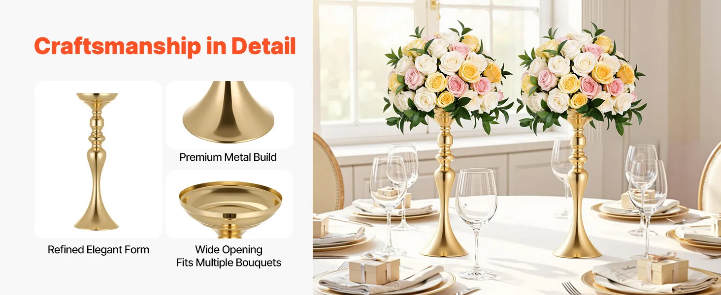 Premium Materials: Crafted from Q235A steel with a French gold-toned electroplated finish, this wedding centerpiece vase presents a bright, polished appearance while maintaining a solid, well-supported structure