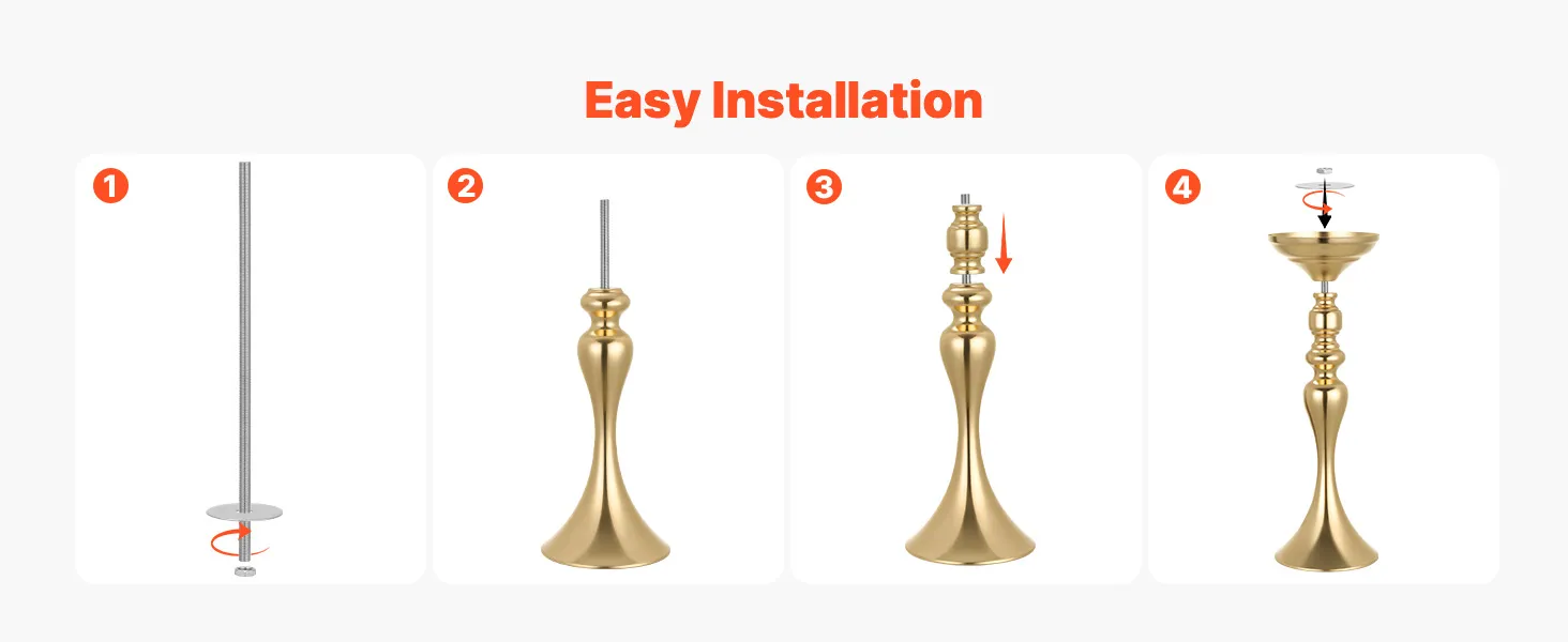 Easy Assembly: Supplied with a sleeve tool, this wedding table vase allows for quick and straightforward assembly, making event setup efficient and convenient