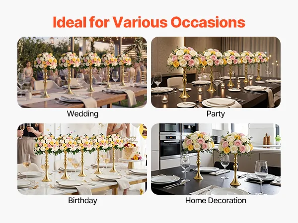 Suitable for weddings, banquets, holidays, and home décor, this wedding decor vase complements a variety of settings with a versatile and coordinated appearance.