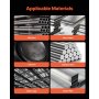 It is compatible with a variety of materials, including mild steel, stainless steel, cast iron, sheet metal, square tubing, and metal cage.