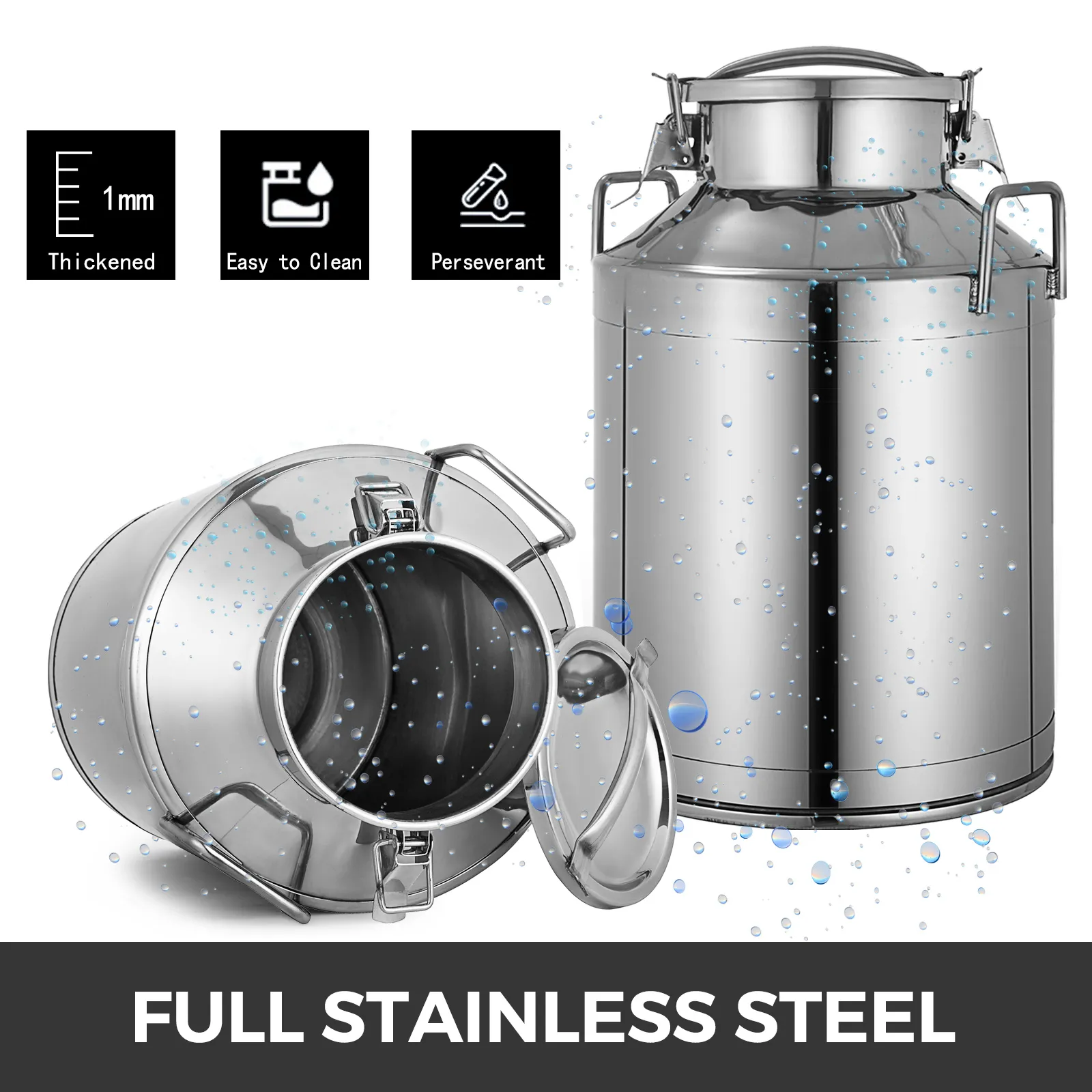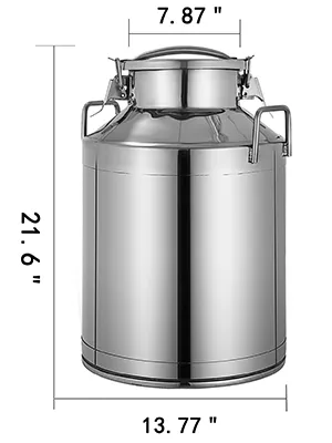 Superior stainless steel milk can, features embedded silicone more airtight. The milk can is made of heavy-gauge stainless steel with one-piece structure, smooth mirror-polish finish is dent resistant and ready for heavy restaurant use. Sturdy handles and quick buckles attached for easier usage.
