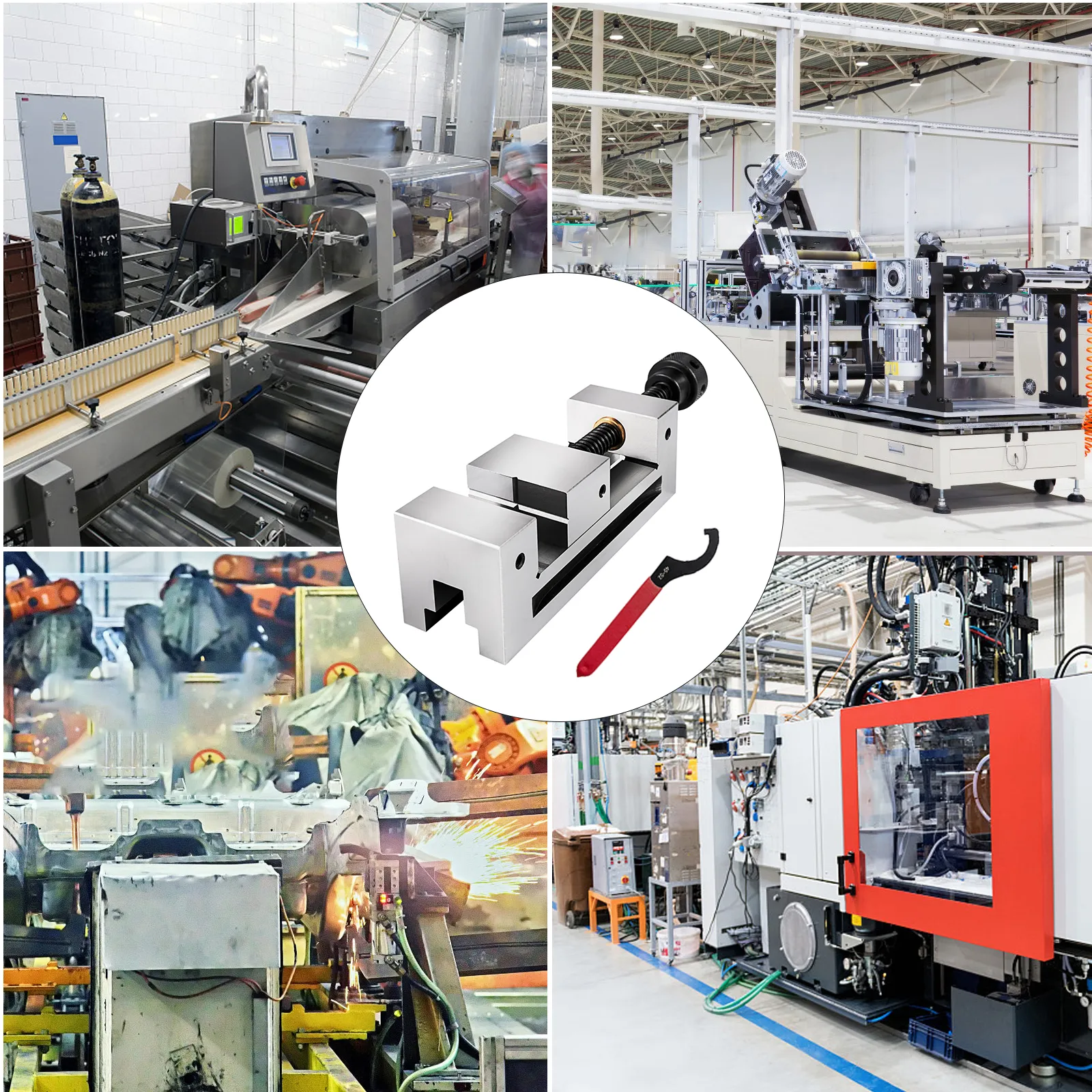 The vise is made of HRC58-62 22CrMnTi steel, with strong toughness, high tensile strength, and wear resistance. It meets various needs on machines by holding workpieces horizontally or vertically.