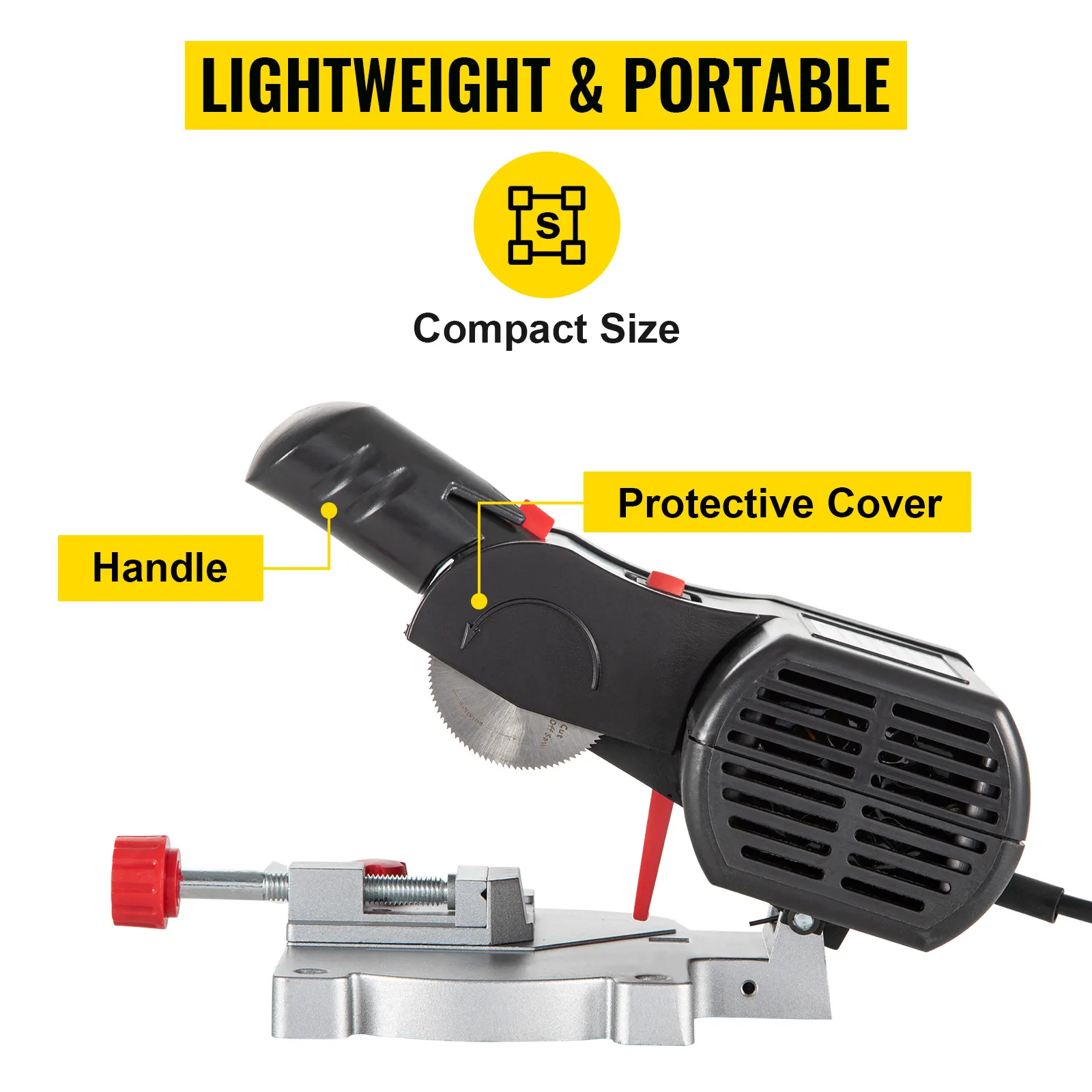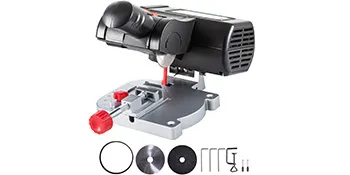 The lightweight mini chop saw with a portable handle is excellent for easy carrying. The protective cover is designed to keep you from sparks during metal cutting.