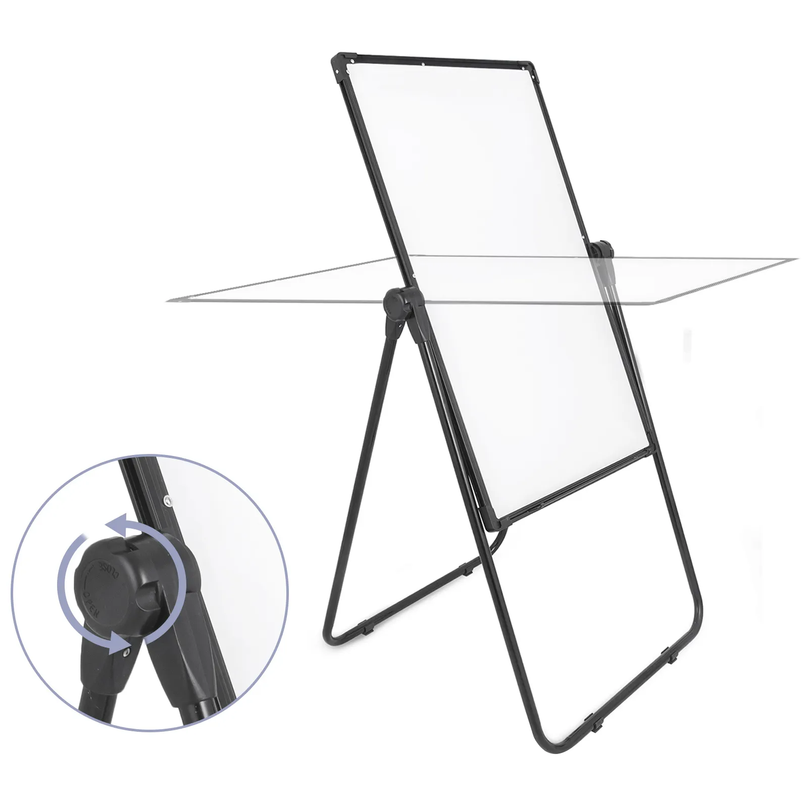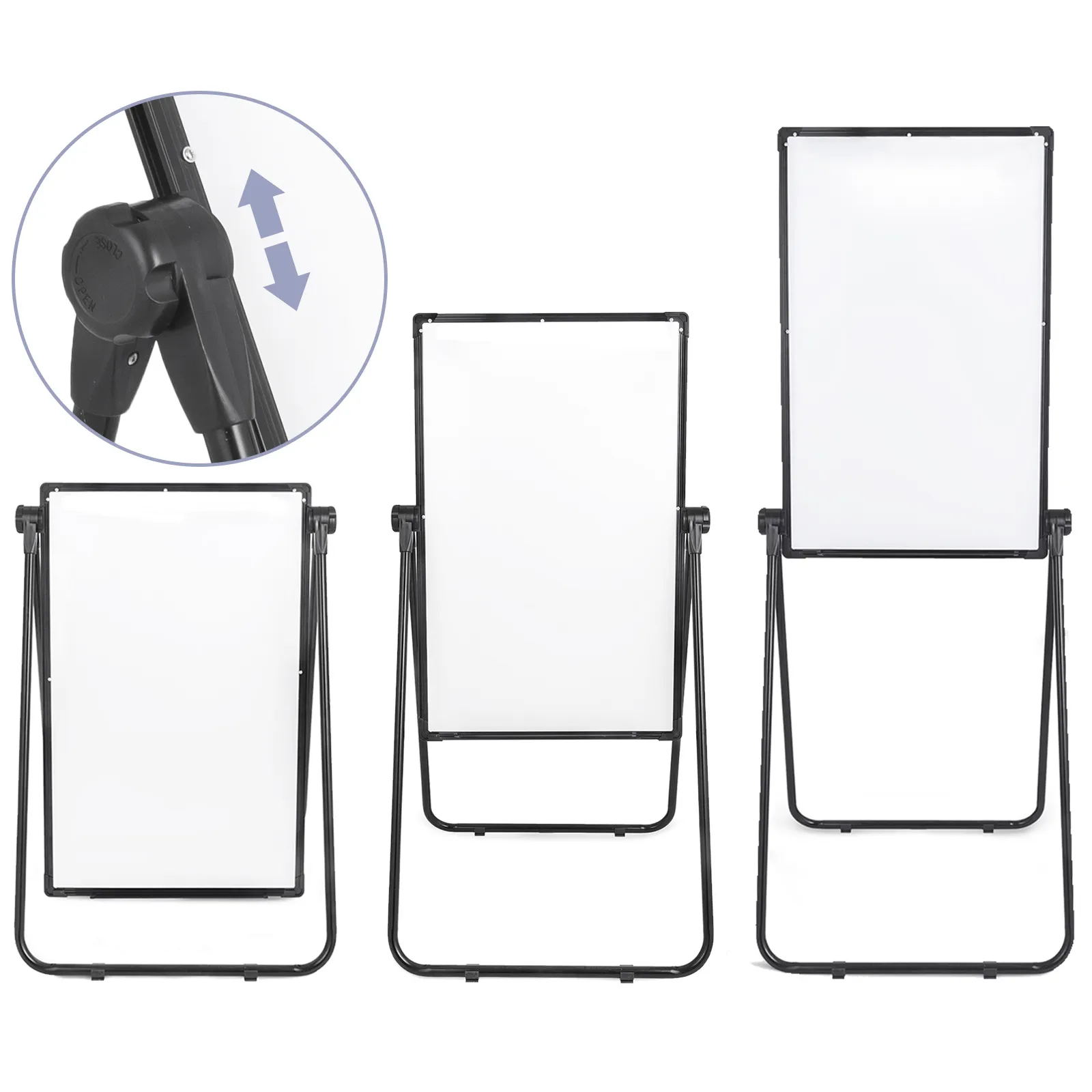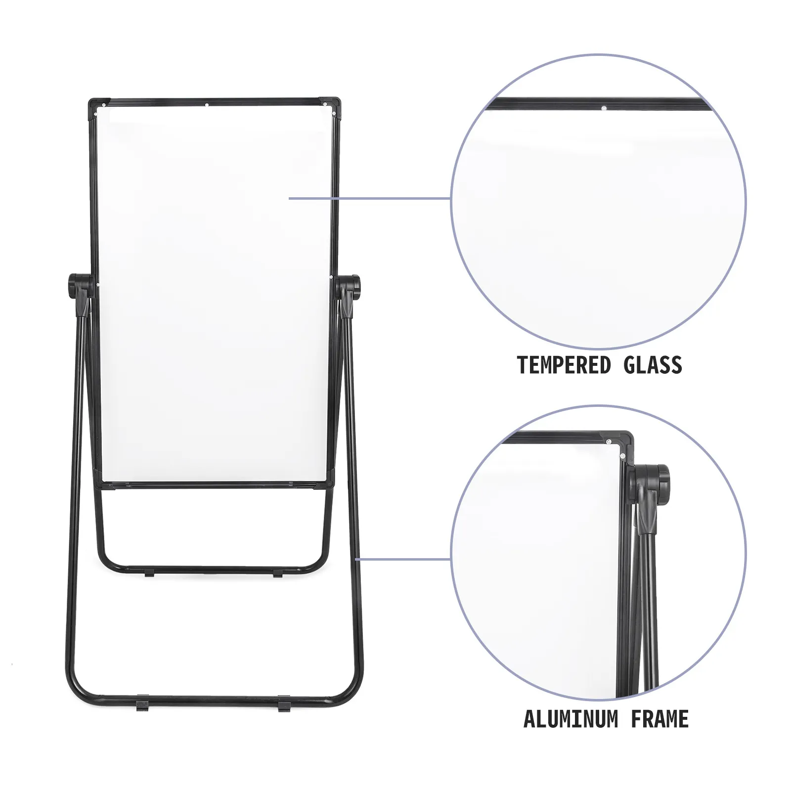 This easel whiteboard is made of tempered glass and aluminum alloy frame, which has high strength, lightweight, and corrosion resistance, sturdy and durable. The height of this flip chart easel can be adjusted, suitable for both children and adults. It can be used as a desktop with the 360-degree rotation. The whiteboard with easel has the wipe-clean surface, stable and portable, widely used in offices, schools, laboratories, and homes.