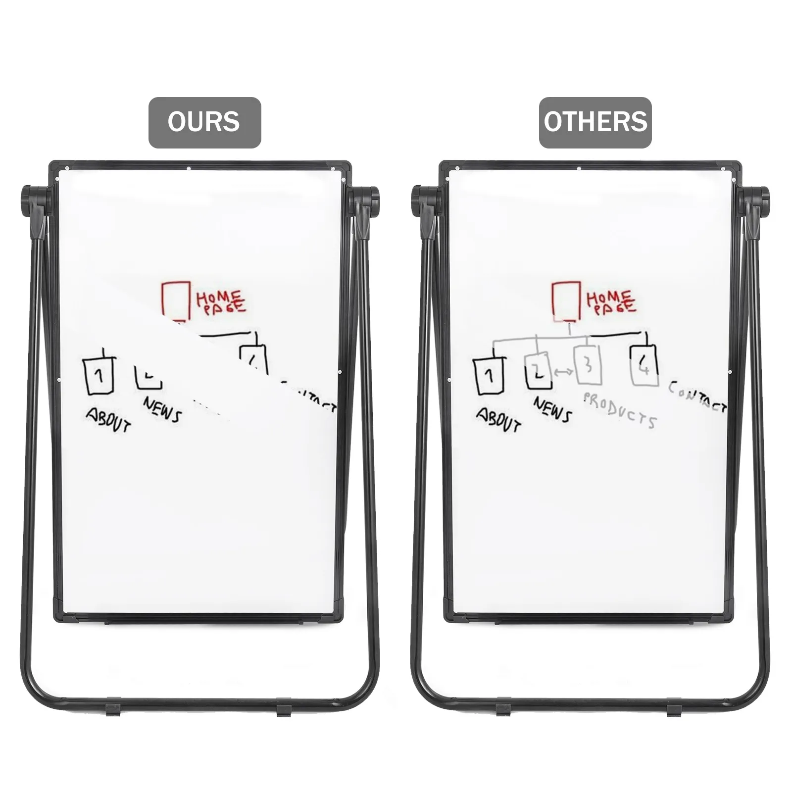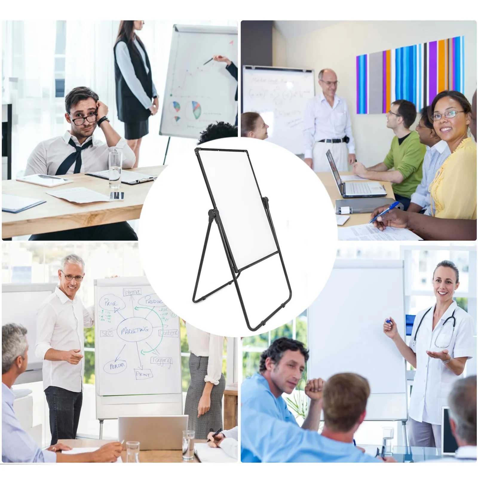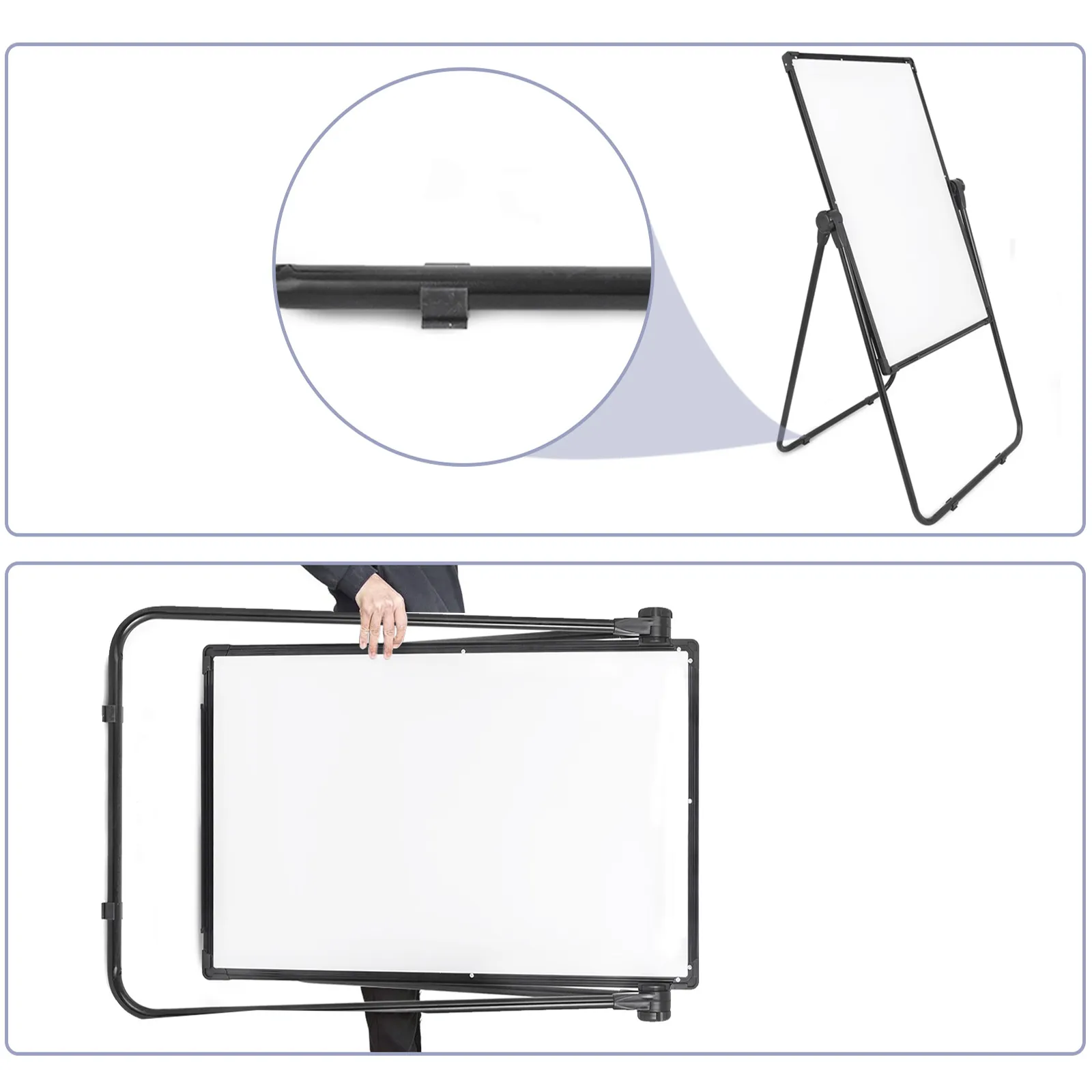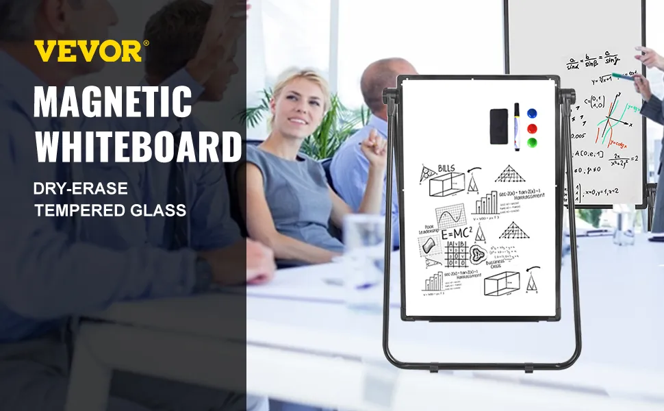 This easel whiteboard is made of tempered glass and aluminum alloy frame, which has high strength, lightweight, and corrosion resistance, sturdy and durable. The height of this flip chart easel can be adjusted, suitable for both children and adults. It can be used as a desktop with the 360-degree rotation. The whiteboard with easel has the wipe-clean surface, stable and portable, widely used in offices, schools, laboratories, and homes.