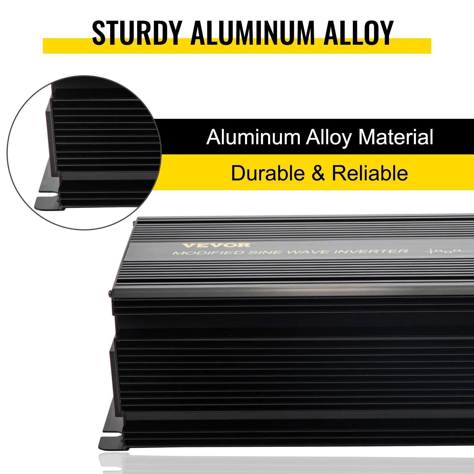 This power inverter is made of aluminum alloy material, which is able to resist oxidation, compression, vibration, and deformation. As a result, a slight drop or impact will not affect the internal parts.