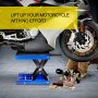A stable bike stand is essential for performing service and repair work on tires, suspension components, engines, and other vital parts. The scissor lift whose load capacity is up to 1,100 lbs can lift most bikes, such as standard, cruiser, touring, sportbike, and so on. Its wide and flat platform ensures stable bike placement and safe working conditions.