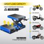 The scissor lift can support a weight of up to 1,100 lbs, including almost all motorcycles, even an ATV.