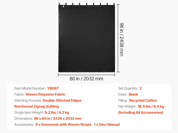 Large Coverage: Each blanket measures 96 x 80 in / 2438 x 2032 mm. 2 packs provide wide coverage with fewer seams, ideal for covering standard doors and windows or handling large spaces where soundproofing, light blocking, and insulation are needed