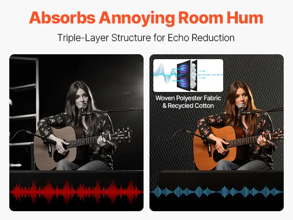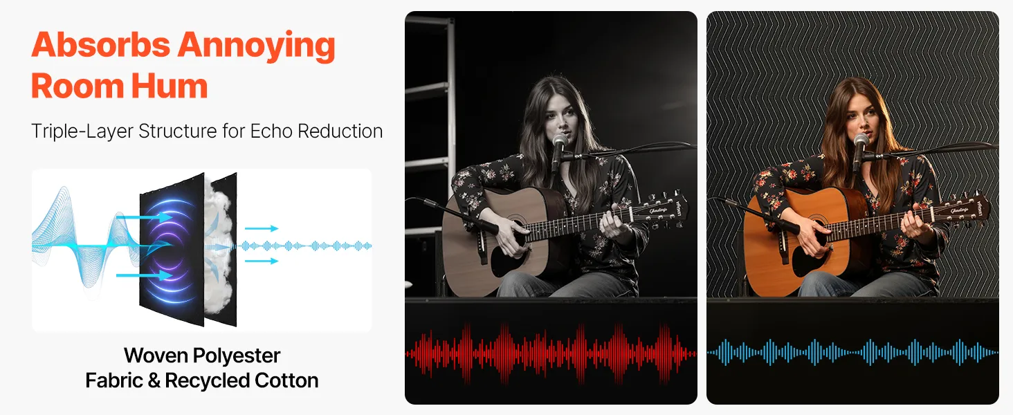 Sound Absorption & Noise Reduction: Made with a polyester woven surface and recycled cotton filling, this 3-layer physical barrier effectively absorbs indoor echoes, reduces sound reflections, and blocks part of the external noise