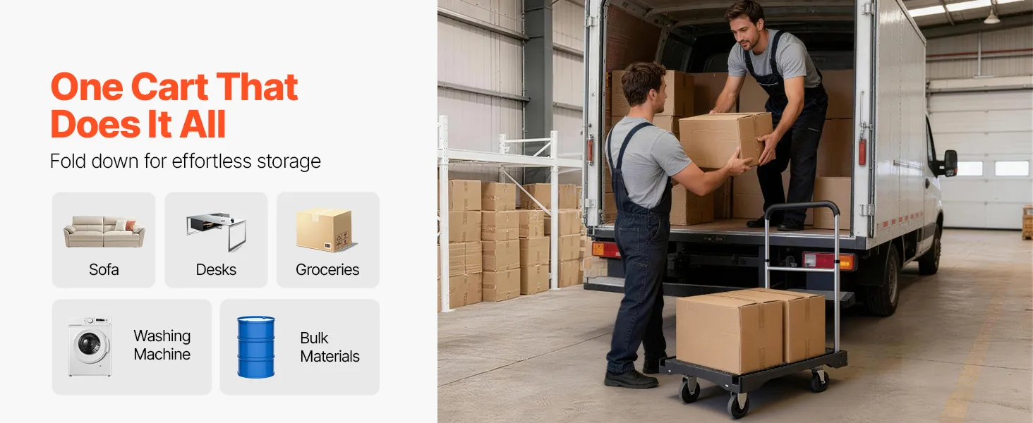 From household chores and shop restocking to office equipment transfers, this foldable flat bed cart with wheels handles it all. One cart covers more jobs with less effort.