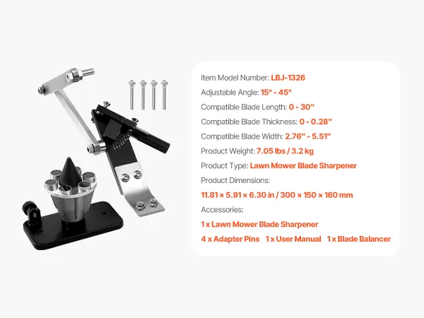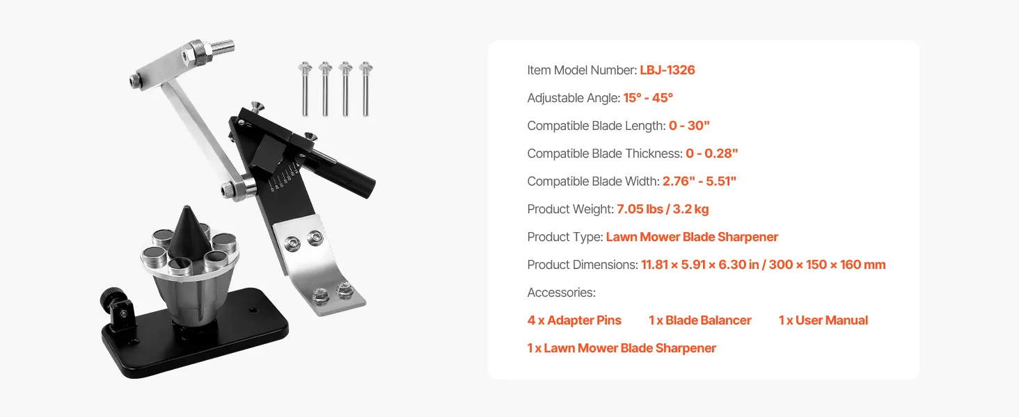VEVOR Lawn Mower Blade Sharpener and Balancer, 15° - 45° Adjustable Lawnmower Blade Sharpening Tool with 4 Adapter Pins, Ball Bearings & 25mm Enlarged Handle, Compatible with Most Angle Grinders VEVOR Lawn Mower Blade Sharpener and Balancer, 15° - 45° Adjustable Lawnmower Blade Sharpening Tool with 4 Adapter Pins, Ball Bearings & 25mm Enlarged Handle, Compatible with Most Angle Grinders