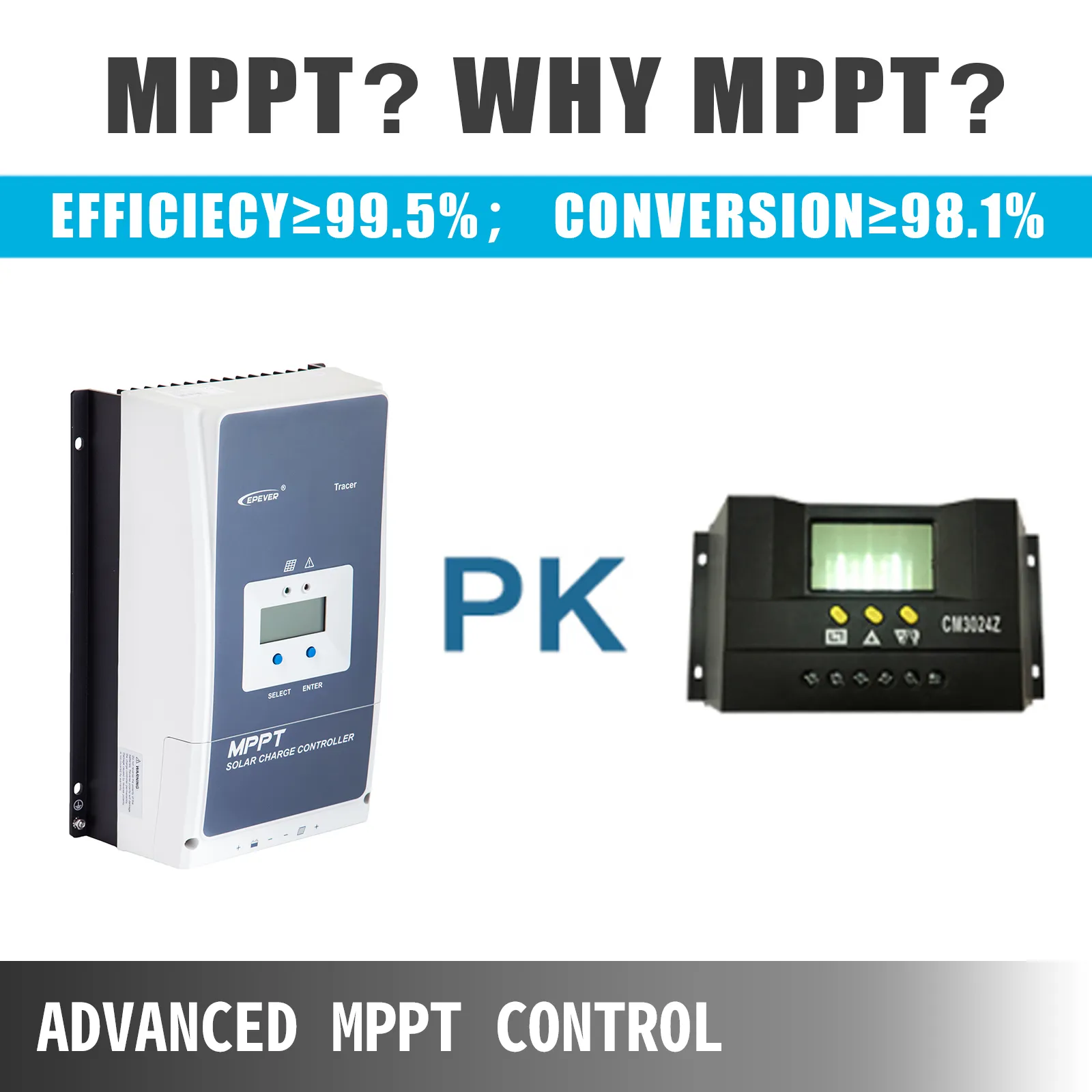 【HIGH EFFICIENCY】-Advanced MPPT Control algorithm can minimize the power point loss rate and loss time, and its tracing efficiency is no less than 99.5%, and conversion is no less than 98.1%.