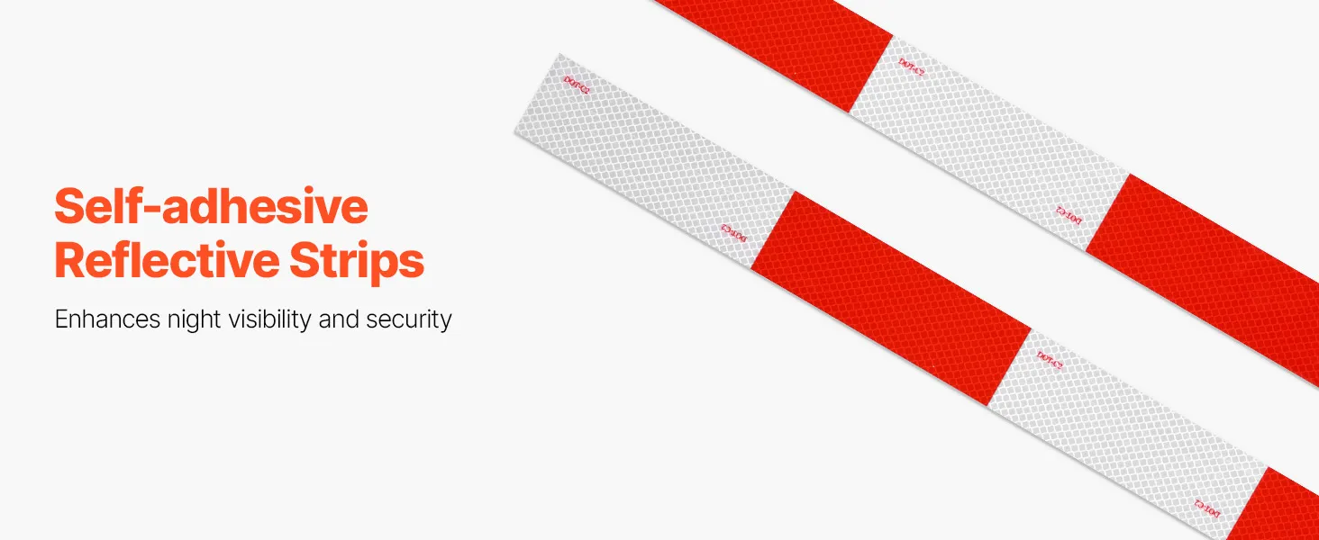High-Visibility Reflective Strips: Conspicuous reflective strips significantly enhance visibility during nighttime and in adverse weather conditions, reducing the risk of accidents and promoting secure driving conditions for all road users