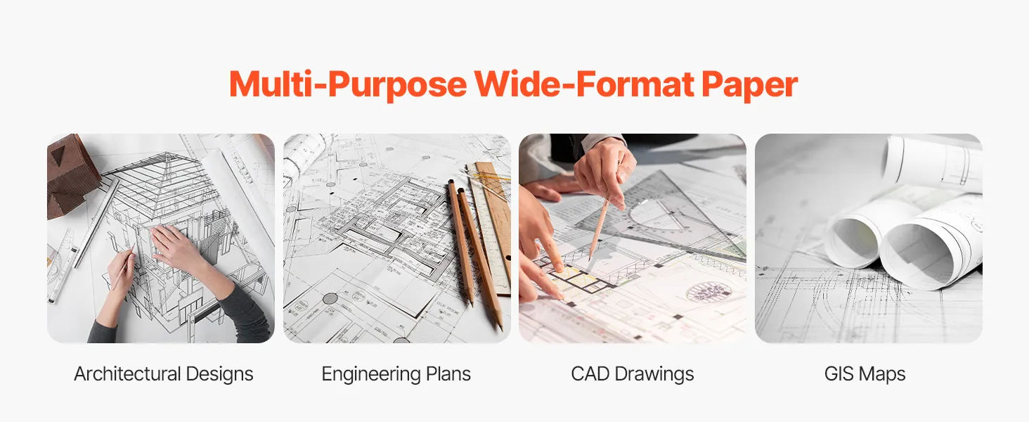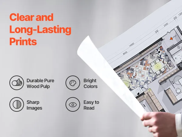 Clear & Vibrant Display: Made from pure wood pulp, this CAD paper roll ensures even ink, pigment, or line distribution during printing and drawing. It delivers sharp, vibrant, and highly legible results with superior color depth and lasting clarity.