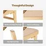 The rattan bench features a durable woven rope seat that won’t sag. Its solid wood frame and polished oak legs ensure stability. It supports up to 250 lbs, comfortably seats two adults, and is ideal for bedrooms, entryways, or dining rooms.