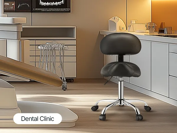 This saddle stool features an ergonomic design with a thickened cushion for added comfort. It supports up to 450 lbs with an SGS-certified hydraulic lift and offers adjustable height and 360° swivel, making it ideal for clinics, salons, and labs.