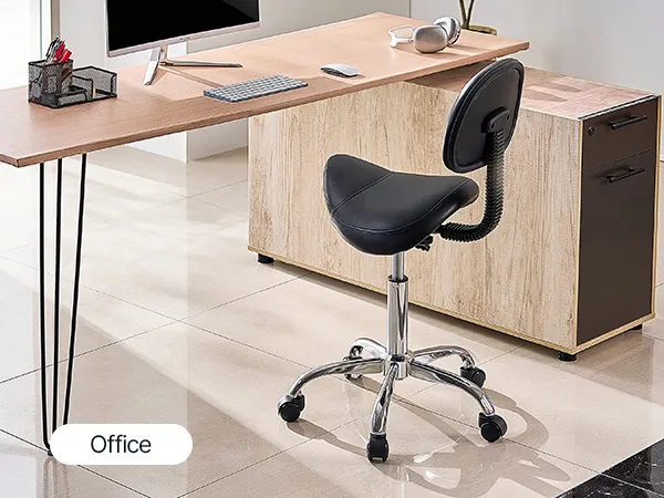 Ergonomic Saddle Design: This ergonomically designed rolling stool features a "saddle seat" design, which aligns the legs with the seat surface to relieve pressure on the waist and legs. It helps prevent poor posture caused by spinal tilt and back pain, promotes proper posture, and reduces fatigue from sitting for extended periods.
